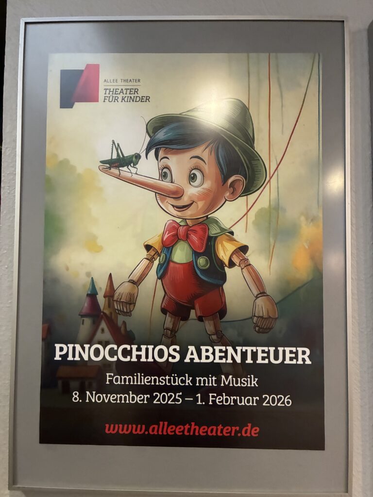Während die ersten und zweiten Klassen eine Vorstellung im Ohnsorg-Theater besuchten, machte sich der dritte Jahrgang auf den Weg nach Altona ins Allee Theater. Nach der Anreise zu Fuß und mit den öffentlichen Verkehrsmitteln wurden wir dort herzlich empfangen. Vor Beginn der Vorstellung hatten die Kinder noch Gelegenheit zu einer kleinen Frühstückspause, bevor wir den gemütlichen und liebevoll gestalteten Theatersaal betreten durften. Auf der Bühne erwartete uns das Märchen „Pinocchio“, das die Schülerinnen und Schüler mit großem schauspielerischem Können sowie abwechslungsreichen und detailreich gestalteten Bühnenbildern begeisterte und in seinen Bann zog.