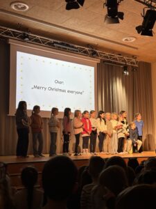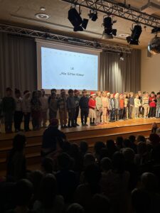 Am 12. Dezember fand unser gemütliches Weihnachtssingen der Klassen 1-4 in der Aula statt. Gemeinsam sangen die Kinder beliebte Lieder wie „Feliz Navidad“ und „Schneeflöckchen Weißröckchen“. Auch unser Schulchor sowie die Klassen 1d und 1b haben mit einem kleinen Auftritt geglänzt. Wir wünschen Ihnen und Ihren Familien schöne Ferien, besinnliche Feiertage und einen guten Rutsch ins neue Jahr!
